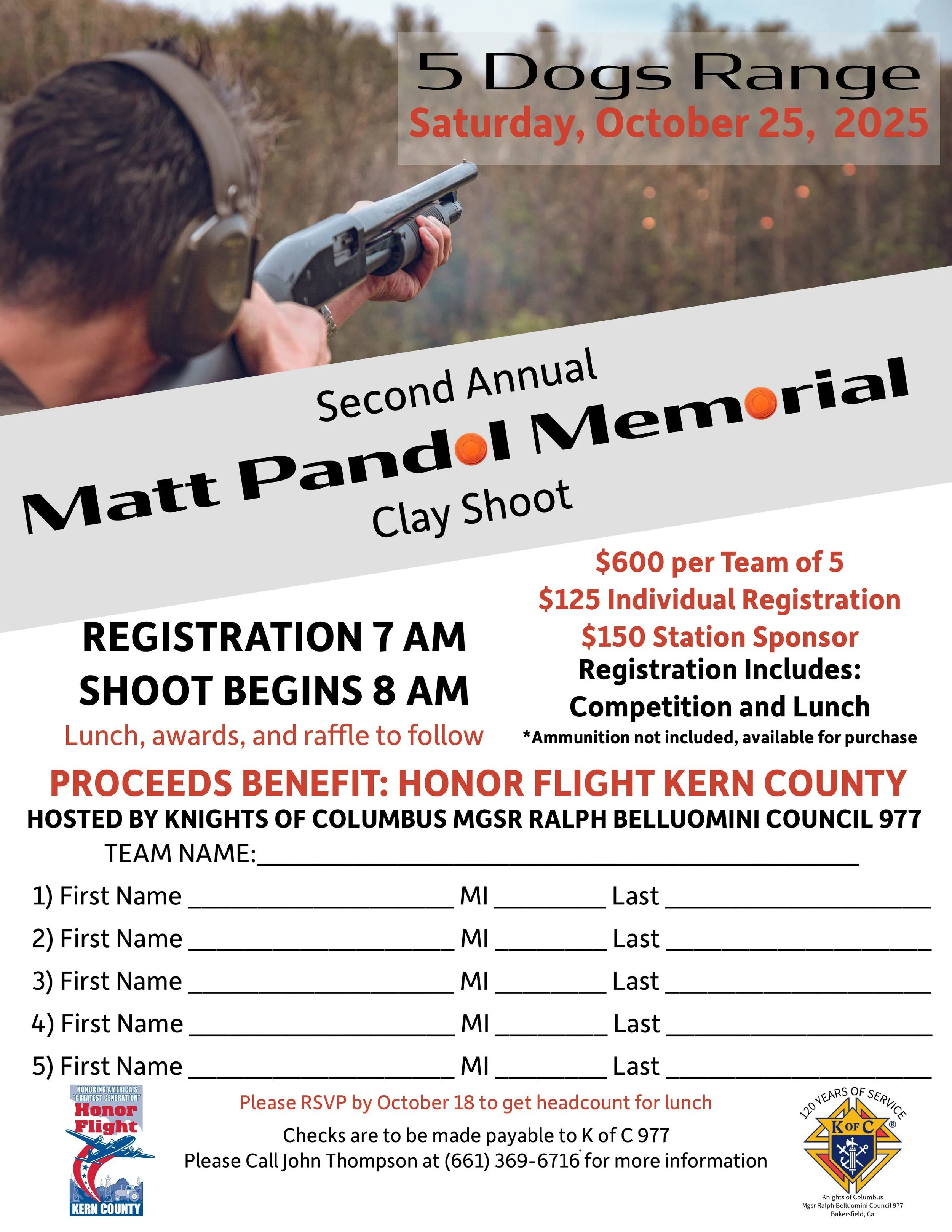 Back to All Events Matt Pandol Memorial Saturday, October 25, 2025 7:30 AM 2:00 PM 5 Dogs Range 20238 Woody Road Bakersfield, CA, 93308 United States (map) Google Calendar ICS Register Here